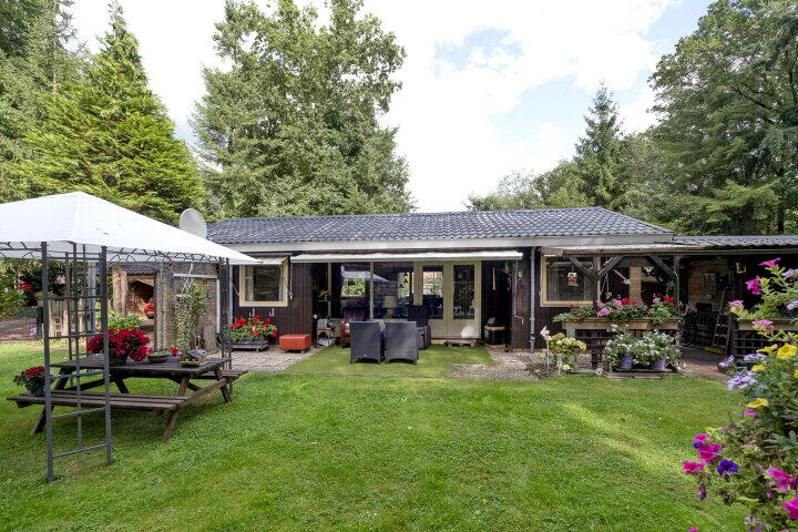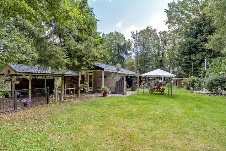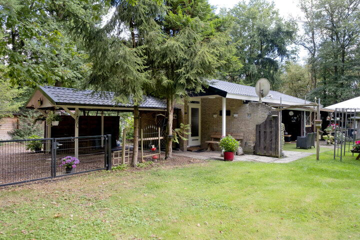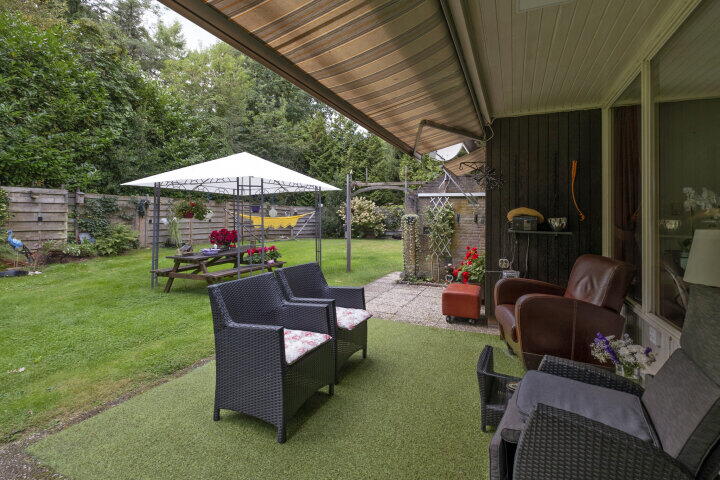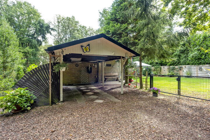 Het buitenleven is hier heerlijk. Vanuit de woning loopt u zo het zonnige terras op. Aan de woning is een tweede overkapping geplaatst. Het perceel is omheind met een houten hekwerk en de carport biedt ruimte om de auto onder dak te parkeren.